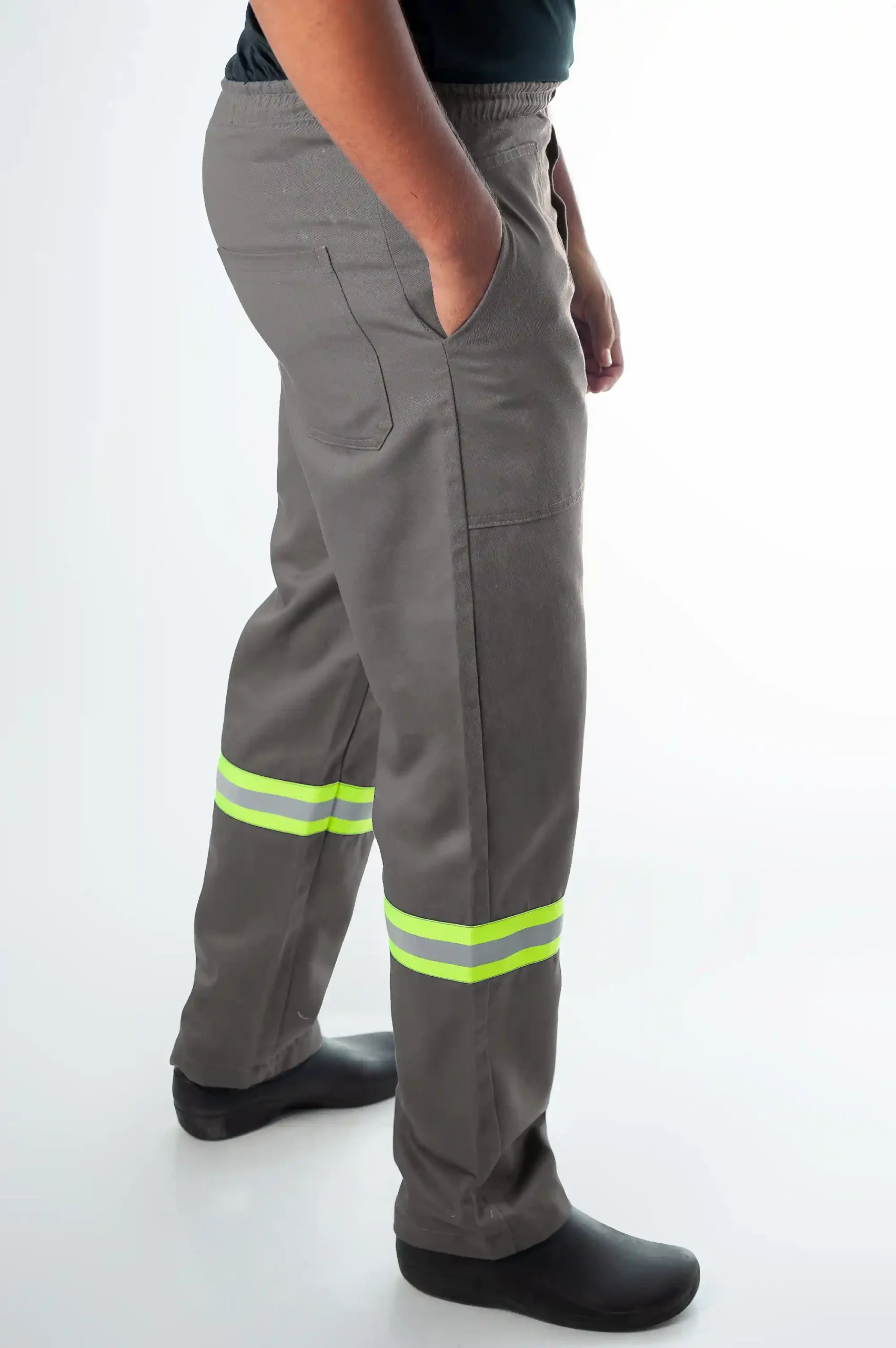 Calça Comprida c/ Elástico Bolso Chapado e Faixa Refletiva em Brim